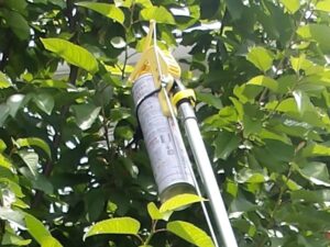 戻ってくるスズメバチが仲間のフェロモンに引き寄せられ、自然に捕虫されます。