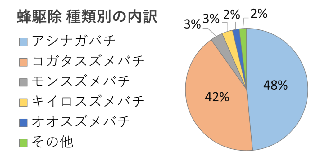 - ハチの種類の詳細については、ーこちらのページーからご確認頂けます。