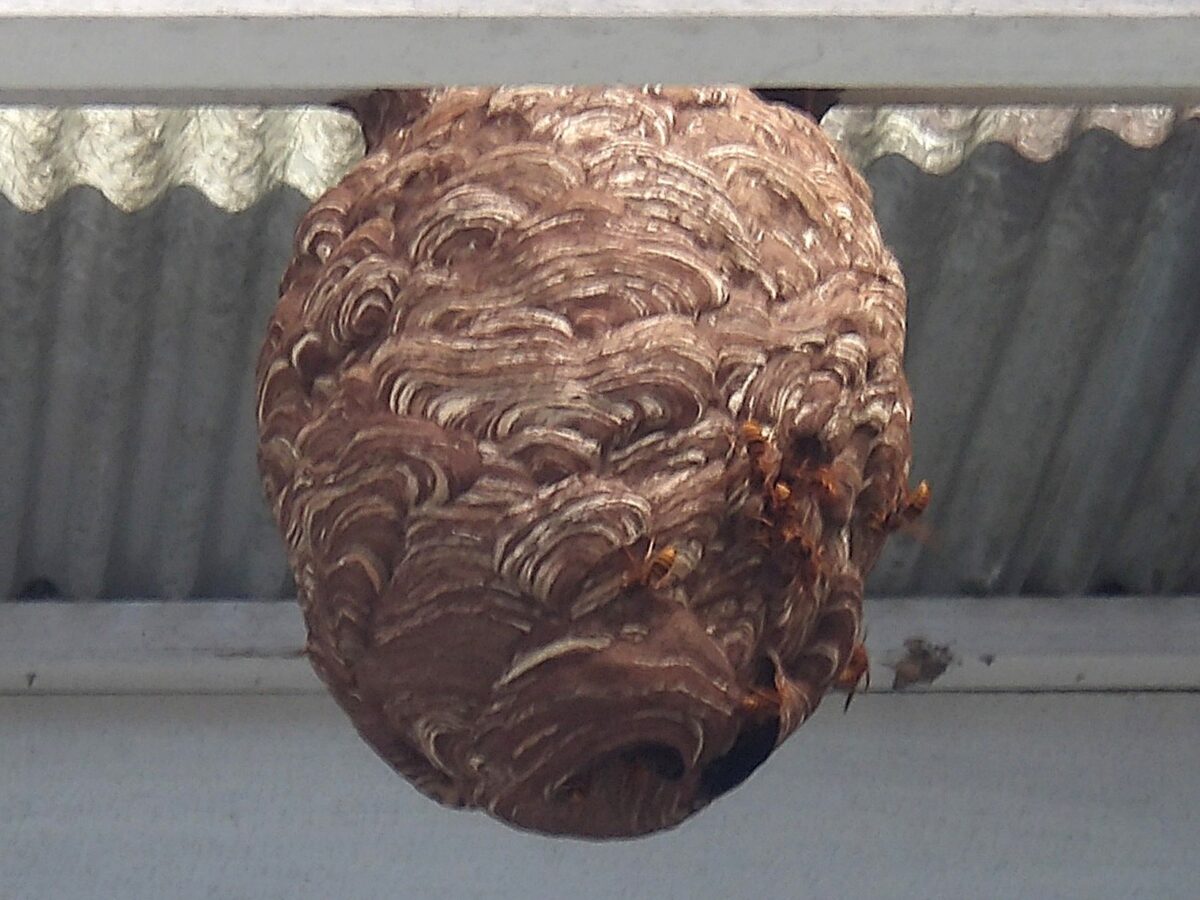 巣に近づいてもほとんどの場合は攻撃をしてきませんが、振動を与えると飛び散り刺されるケースがあります。